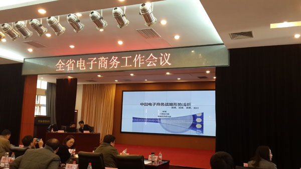12月12日上午,高海朋總經(jīng)理應(yīng)邀參加全省電子商務(wù)工作會議,焦錦淼廳長出席會議并講話,張雷明副廳長主持會議,各省轄市、省直管縣(市)商務(wù)局負責(zé)同志,廳機關(guān)有關(guān)處室負責(zé)人,省網(wǎng)絡(luò)營銷協(xié)會、省國際貿(mào)易網(wǎng)商協(xié)會、骨干電商企業(yè)代表,共160余人參加會議。