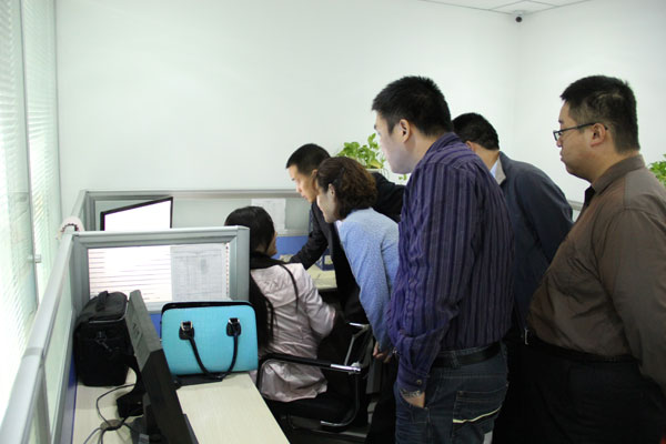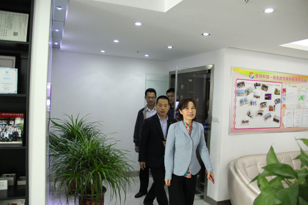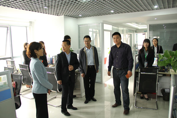 在工作人員的陪同下,王局長一行先后參觀了聯(lián)創(chuàng)科技銷售大廳、技術(shù)部、客服部,其間,王局長詳細(xì)了解了員工的辦公情況,并就工作內(nèi)容向員工親切詢問。