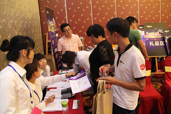 財(cái)務(wù)部正在認(rèn)真登記前來簽單的客戶信息